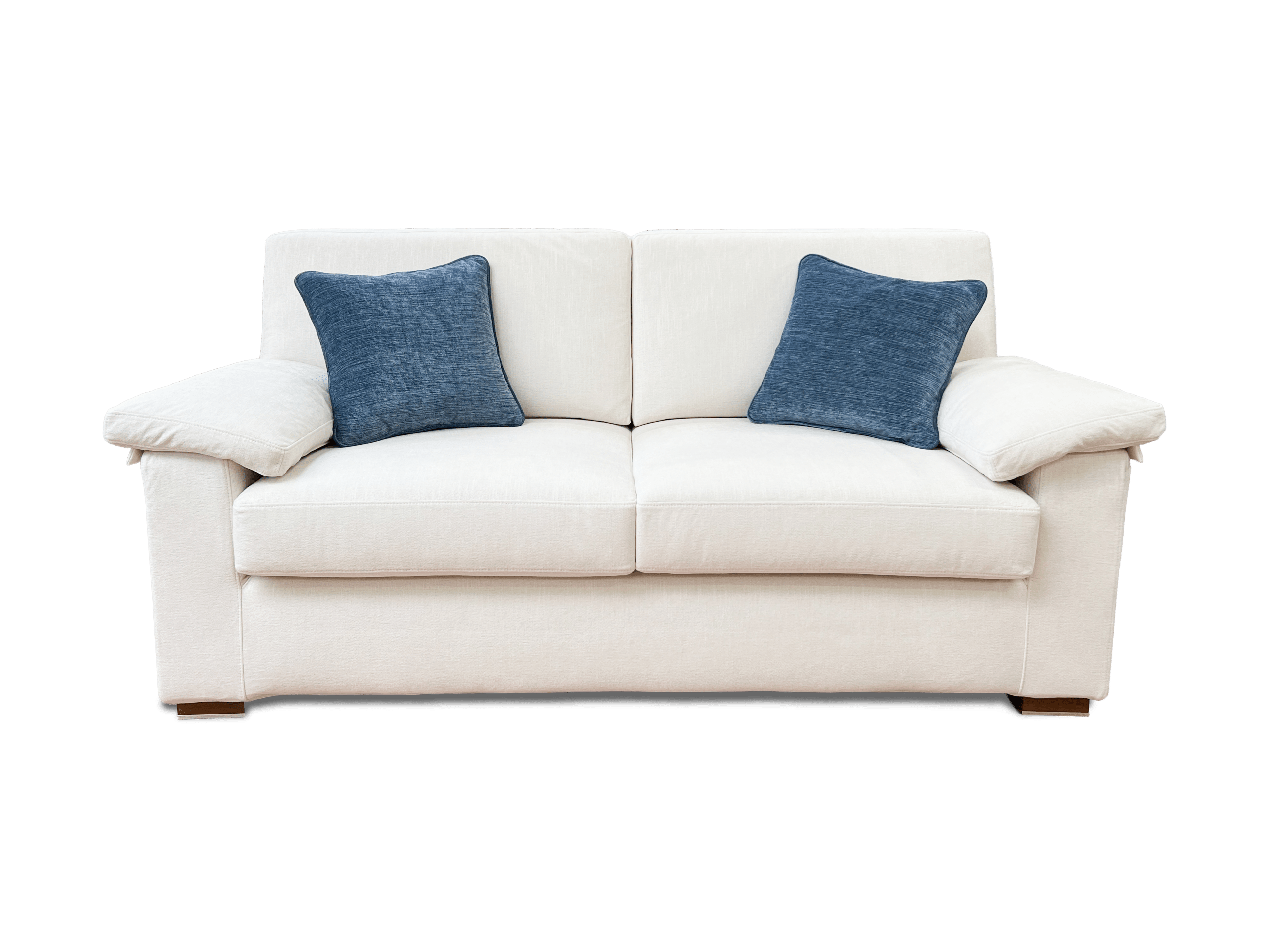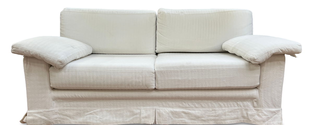 Questo divano, segnato dall'usura, aveva smarrito parte del suo fascino: il tessuto consumato e le sedute ormai indebolite non gli rendevano più giustizia. Lo abbiamo valorizzato con una cura attenta, restituendogli forma e comfort rivestendolo con un tessuto capace di riportarlo al centro della scena. A completamento, abbiamo scelto cuscini decorativi in una sofisticata tonalità di blu: un contrasto elegante che illumina l’insieme con un tocco di stile inconfondibile.